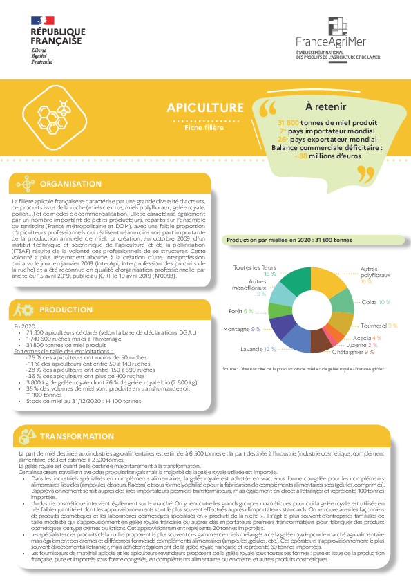Fiche Filière Miel AgriMer Publication 2022 for the year 2020 highlighted in relation to 2021